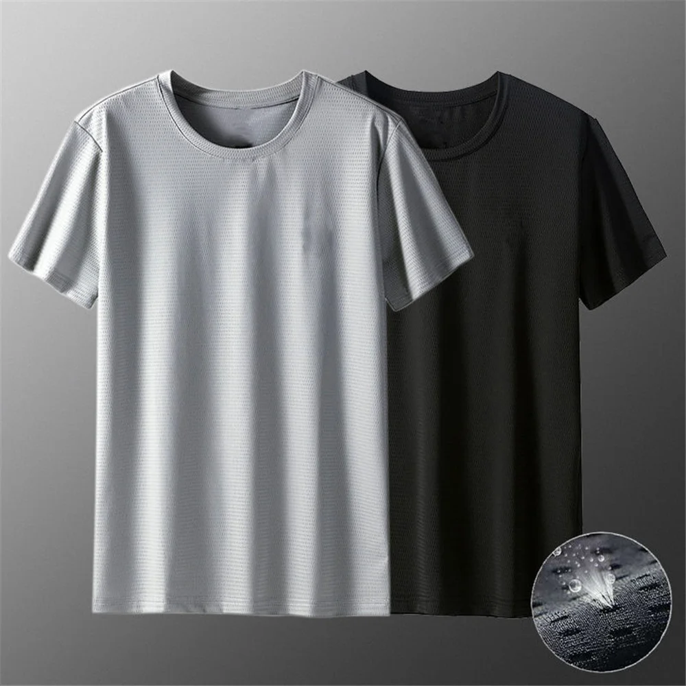 Футболка мужская быстросохнущая дышащая, сетчатая рубашка из вискозы, с короткими рукавами, свободного покроя, размера плюс Спортивная модная, на лето