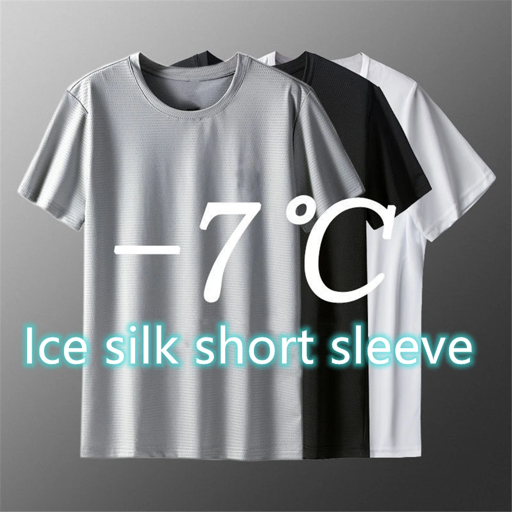 Мужская летняя футболка из ледяного шелка, с коротким рукавом, дыша...