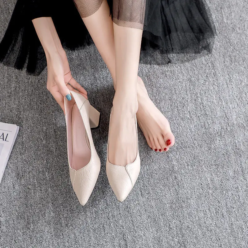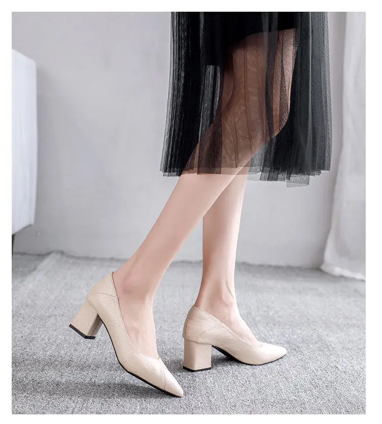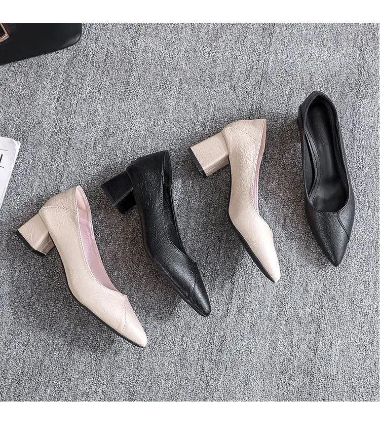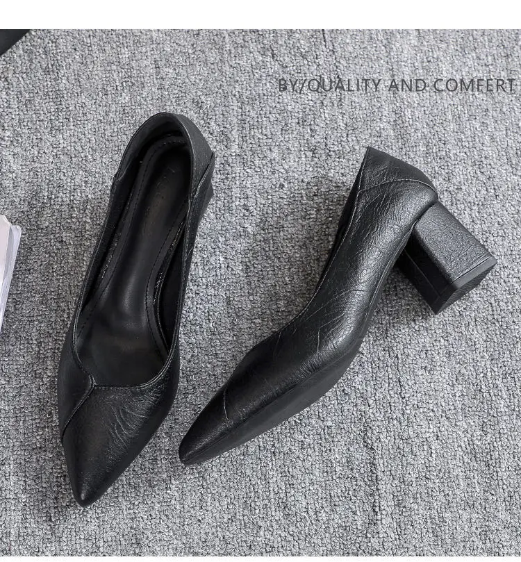 Женские однотонные туфли на толстом каблуке, Новинка осени 2021, женская черная рабочая обувь из мягкой кожи на среднем каблуке 3 см и маленьком каблуке 5 см