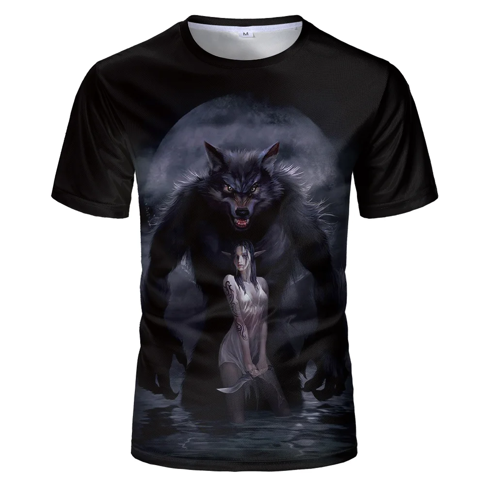 Футболка мужская дышащая с 3D-принтом волка, модная спортивная тенниска с коротким рукавом и круглым вырезом, Повседневная Уличная одежда, 2021
