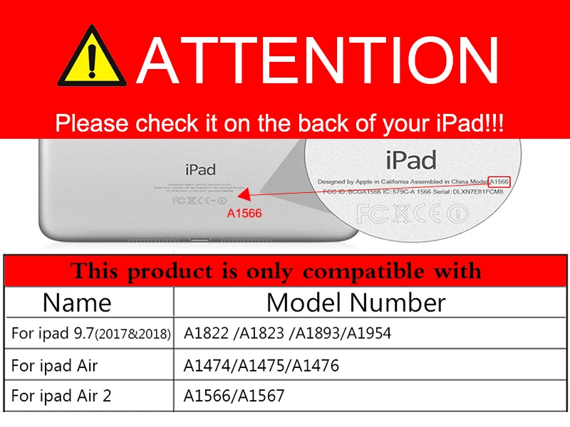 Особенности продукта:1. Компактный, элегантный, стильный, легко устанавливается и снимается.2. Удобное положение подставки для просмотра фильмов или ввода текста.3. 100% высокое качество, индивидуальный и идеально подходит для вашего планшета.4. Против нежелательных ударов, случайных падений, царапин, синяков или пятен.Совместимость:Модель iPad 2/3/4: A1395/A1396/A1397/A1403/A1416/A1430/A1458/A1459/A1460Модель iPad Air: A1474/A1475/A1476Модель iPad Air2: A1566/A1567Модель iPad Air3: A2123/A2152/A2153/A2154IPad 9,7 дюймов 2017 Модель: A1822/A1823Для iPad 9,7 дюймов 2018 Модель: A1893/A1954Для iPad 10,2 дюймов 2019 7th Модель: A2197/A2198/A2200Для Apple iPad 10,2 дюймов 2020 8-го поколения (A2270/A2428/A2428/A2429)IPad Pro 9,7 дюйма Модель: A1673/A1674/A1675Для iPad Pro 10,5 дюймов Модель: A1701/A1709/A1852IPad Pro 11 дюймов Модель: A2228/A2231 /A1934/a1992/a1980/a2013IPad Pro 12,9 дюйма A2229/A2233/A1876/A1895/a1983/a2014IPad mini 1/2/3 Модель: A1432/A1454/A1455/A1489/A1490/A1491/A1599/A1600Модель iPad mini 4: A1538/A1550Модель iPad mini 5: A2124/A2125/A2126/A2133Посылка включает в себя:1 х защитный чехолСтилус-1 шт.