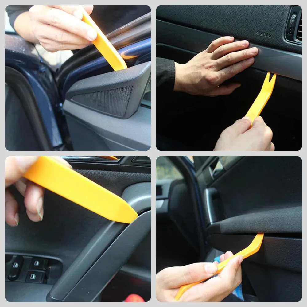 Набор усиленных инструментов - незаменимая вещь в особенности для тех кто не хочет видеть царапины после вскрытия обшивки ножом или отверткой.Мы настоятельно рекомендуем данные инструменты, с ними снимать обшивку, пластик, клипсы, извлекать магнитолу, прокладывать шумоизоляцию не составит труда.Инструменты изготовлены из твердого пластика, сломать их натек уж и просто.Инструменты для снятие обшивки отлично подходят в качестве автомобильной оснастки.