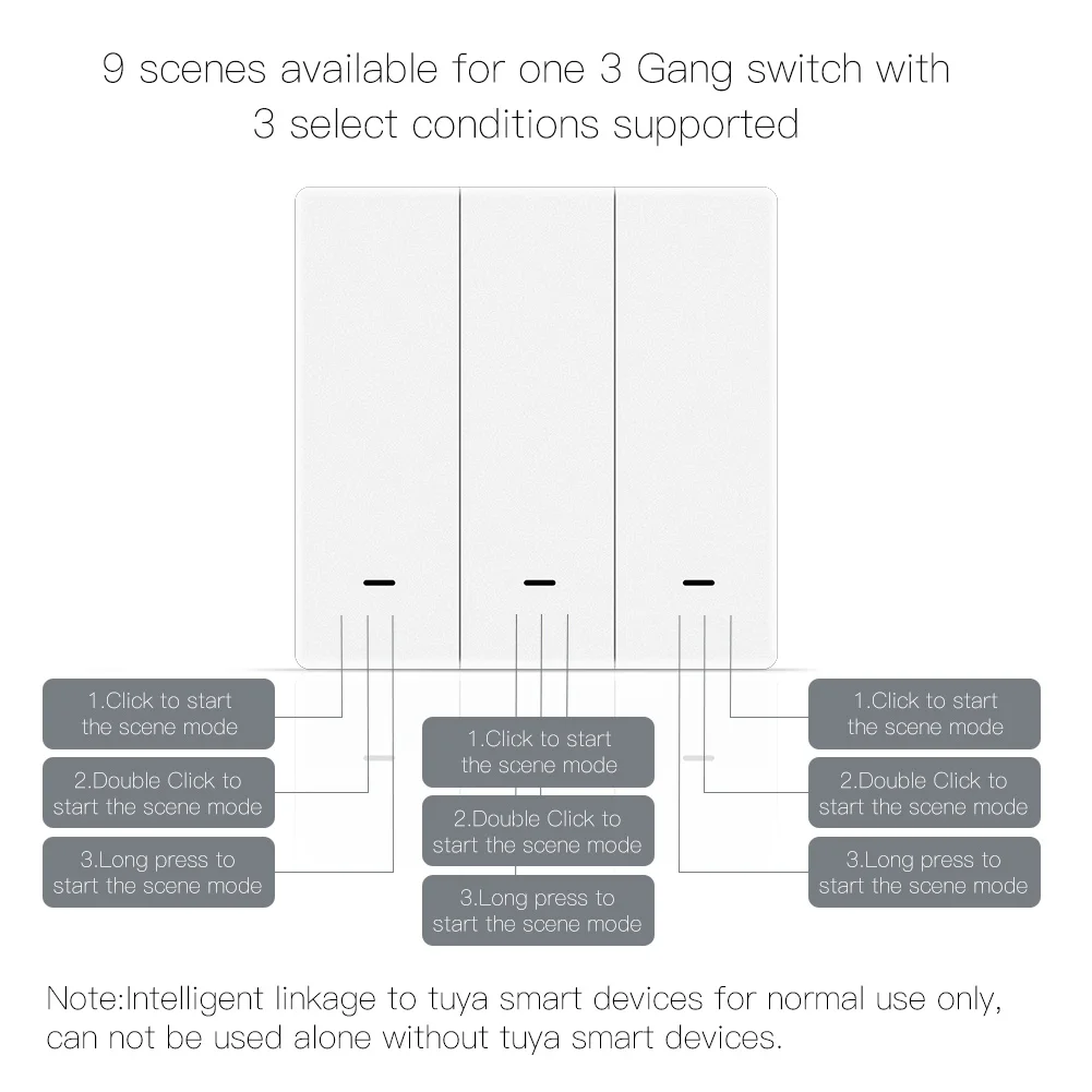 Tuya ZigВEeБеспроводной 9 сценыБатарея Контроллера Switch механическая кнопка для нажатияПитаниеПереключатель переключения через приложение Smart Life, сценарий автоматизации умного дома для умных устройств на 1/2/3 группИзготовитель: MoesHouse