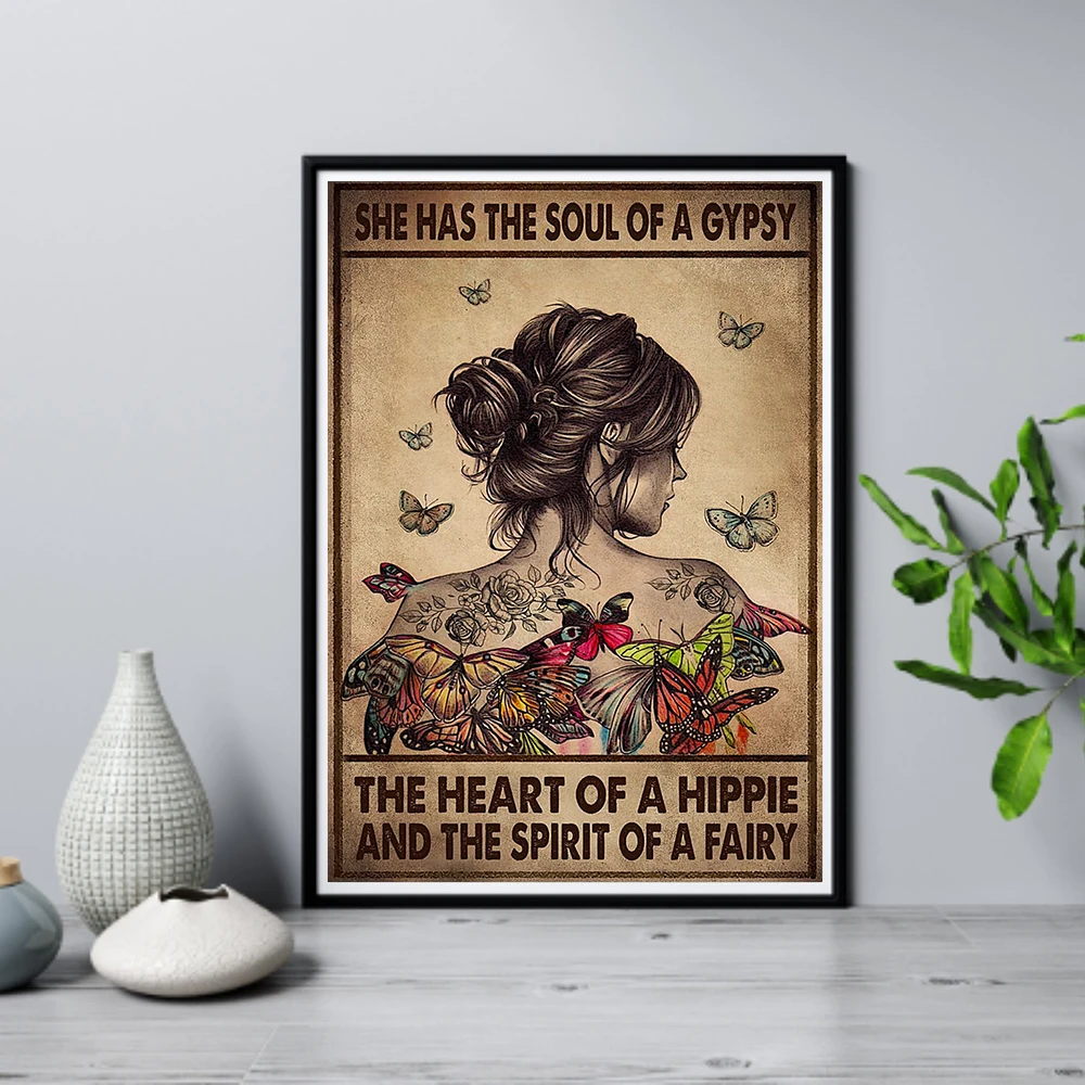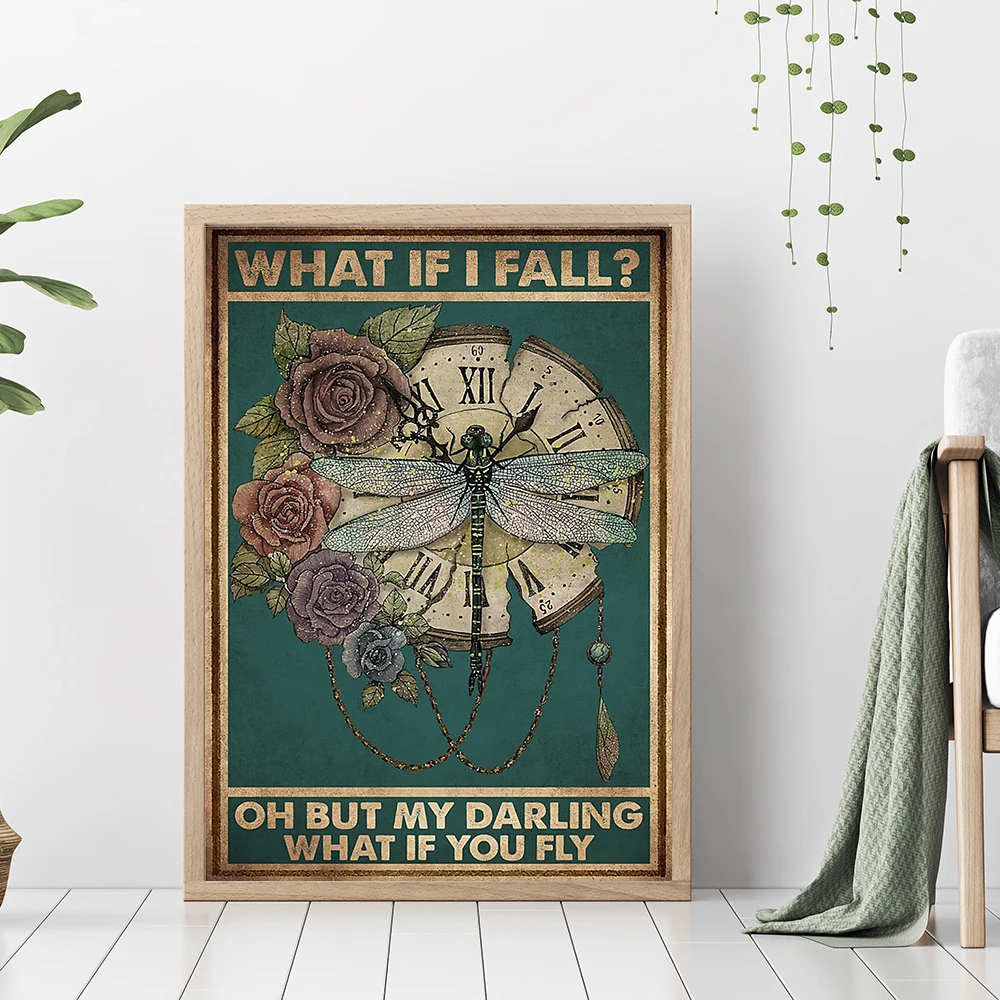 Женский постер с изображением бабочки стрекозы, украшение на стену в стиле ретро, украшение для дома