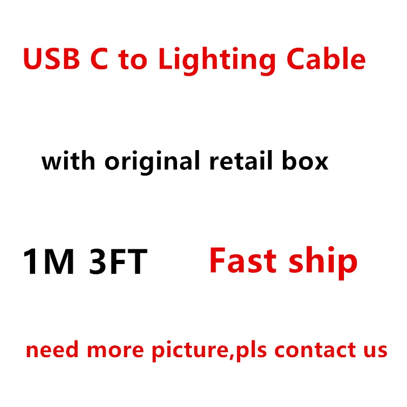 1) абсолютно новый 2) гибкий дизайн 3) usb-кабель для синхронизации данных/зарядки 4) Изготовлено из экологически чистых материалов 5) совместим с мобильный телефон/12/11/11pro/11pro max 6) Длина кабеля: 1 м Все кабели напечатаны по-разному серийный номер Посылка включает: 50 шт. x 1 м USB к C кабель Посылка включает в себя 50 шт. x 1 м USB C до 8pin кабель (новая коробка)