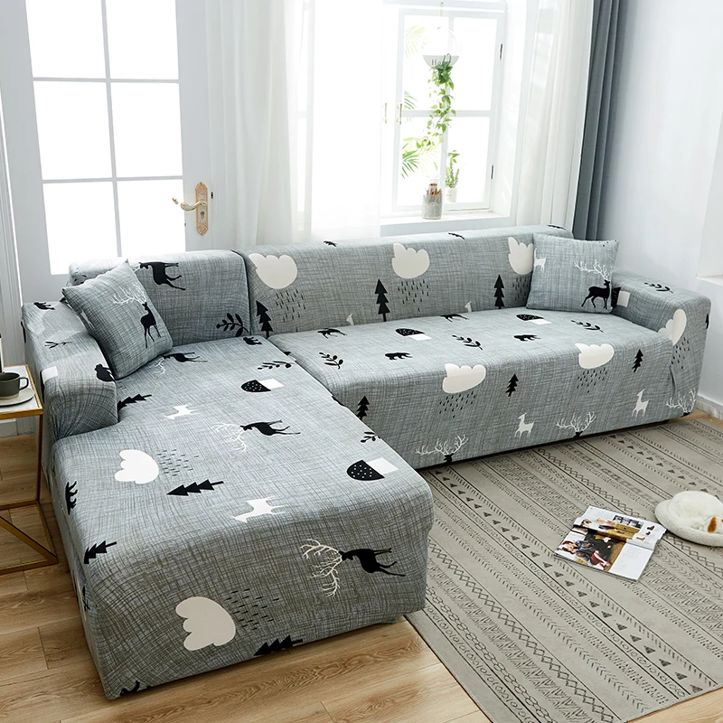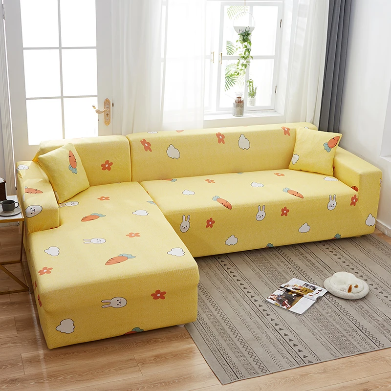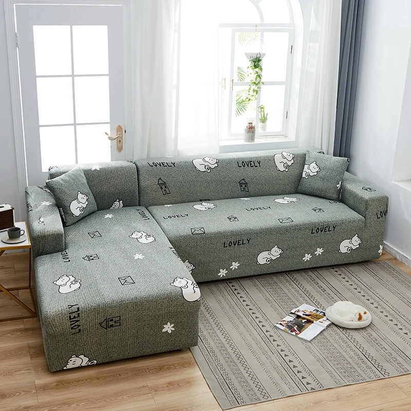 Эластичный чехол из спандекса с мультяшным принтом, чехол для дивана, растягивающийся чехол для гостиной, спальни, дивана, угловой L-образный чехол для дивана