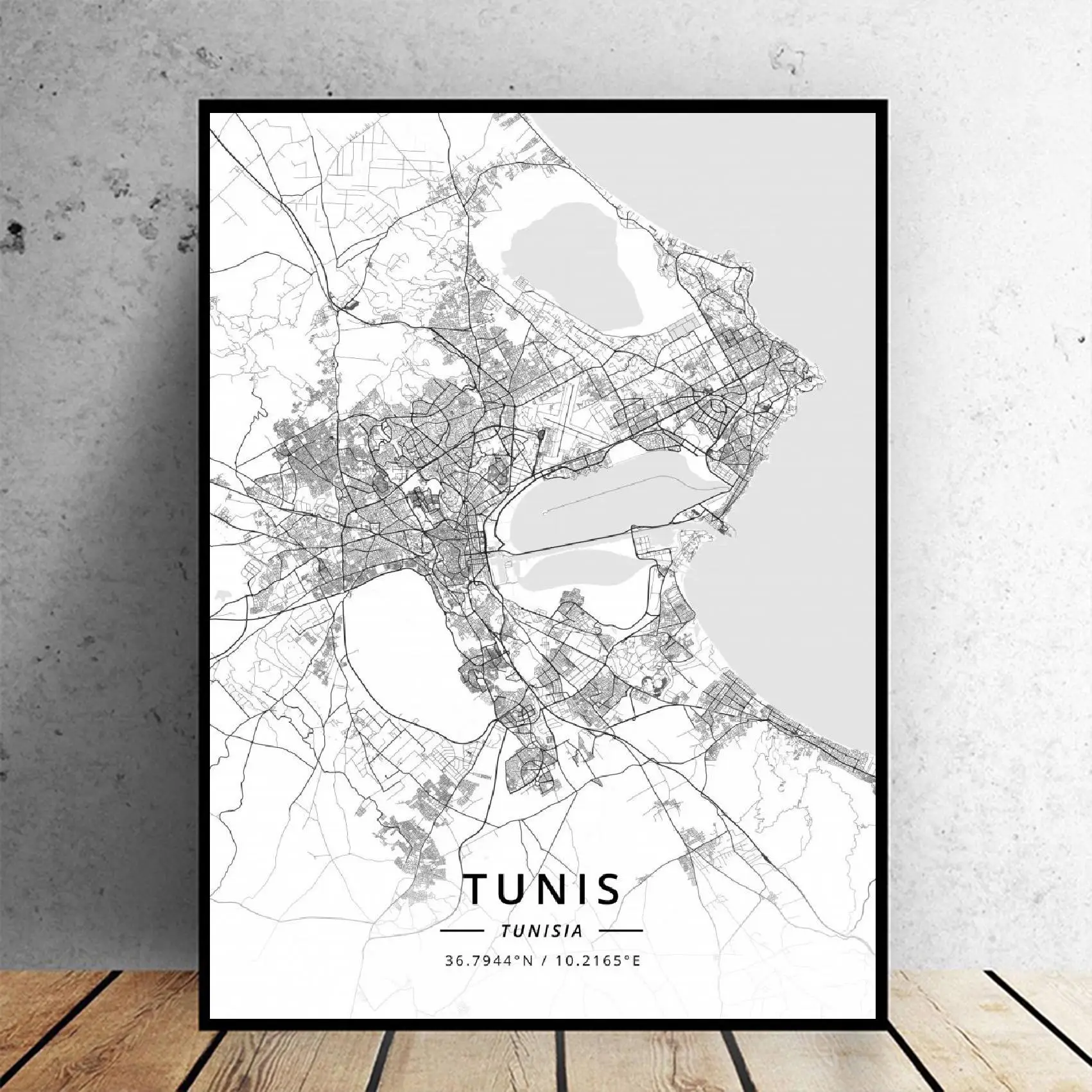 Черно-белый фотографический плакат с длинной долготы Туниса, Художе...