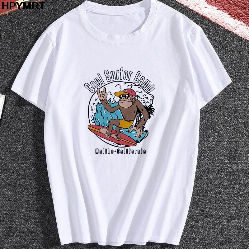 Футболка женская с принтом обезьяны, крутая Повседневная рубашка с коротким рукавом и круглым вырезом, Топ в стиле Харадзюку, одежда для серфинга, на лето