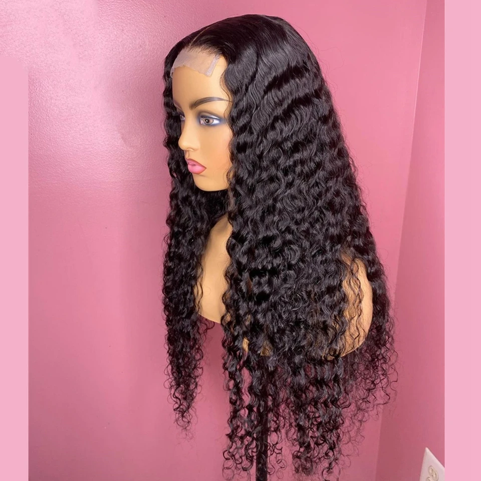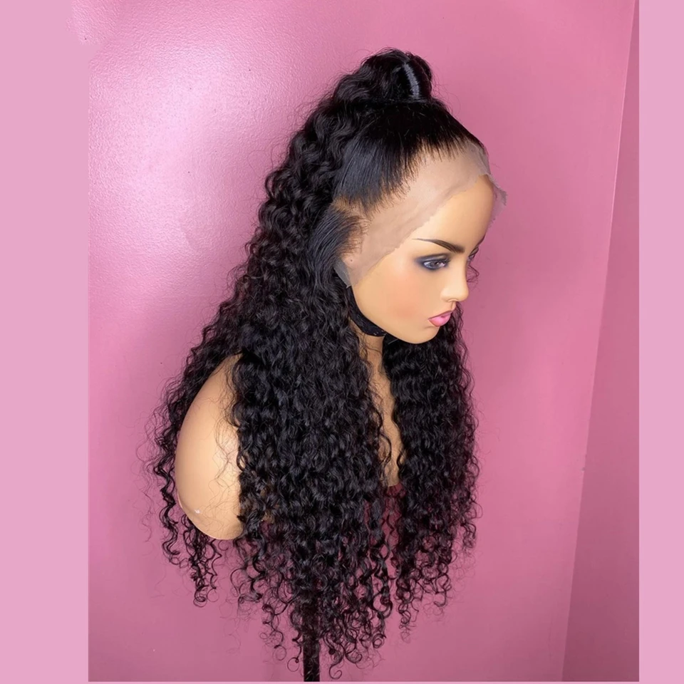 Парик струйный Черный на сетке спереди с глубокой волной и детскими волосами, синтетический парик для чернокожих женщин, предварительно выщипанные длинные парики для косплея