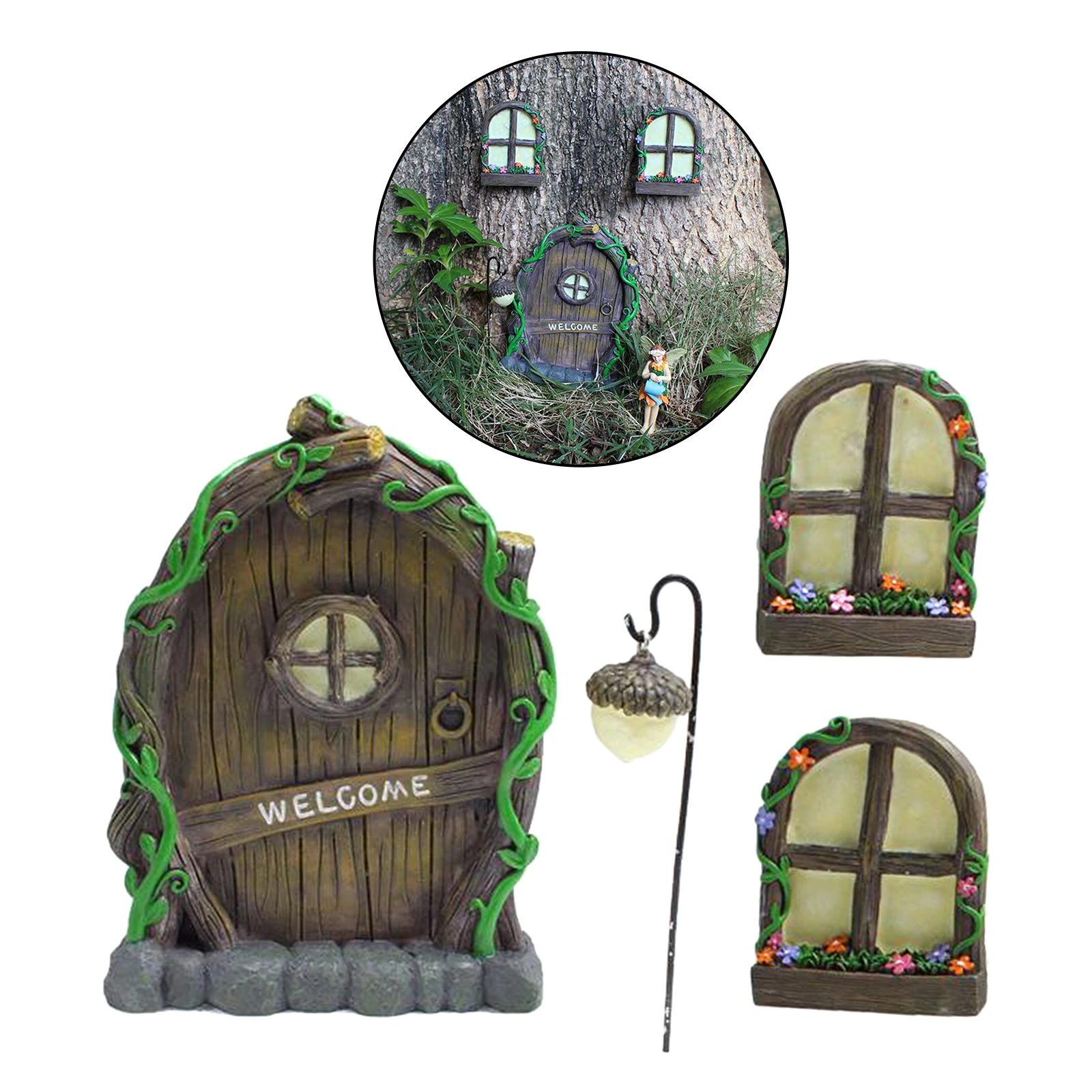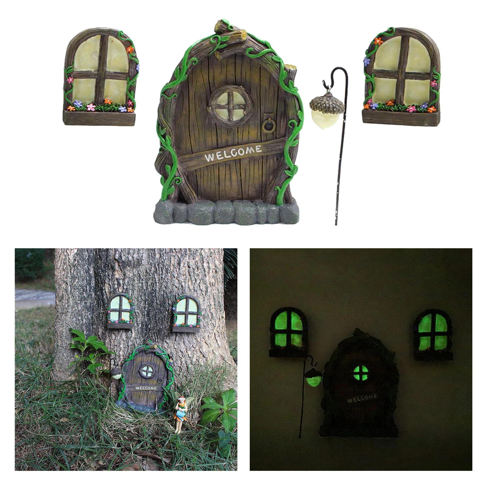 Миниатюрный и Fairy Elf дома двери и окна, Симпатичные дерево декор искусство украшения, окно может светится в темноте