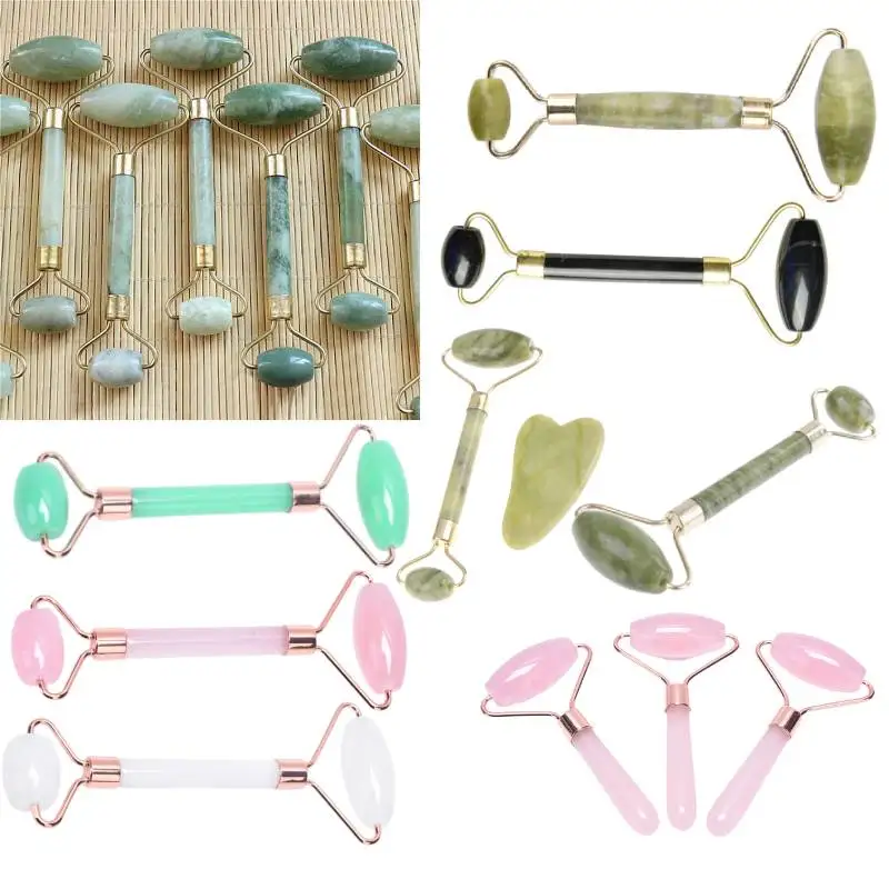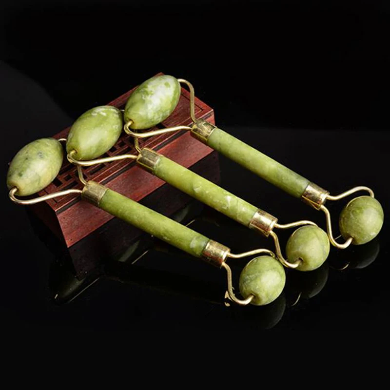 Роликовый массажер для лица гуаша, натуральный нефрит с двойной головкой, для массажа лица, подтяжки лица, расслабления кожи тела, для похудения, тонкий инструмент для красоты и шеи