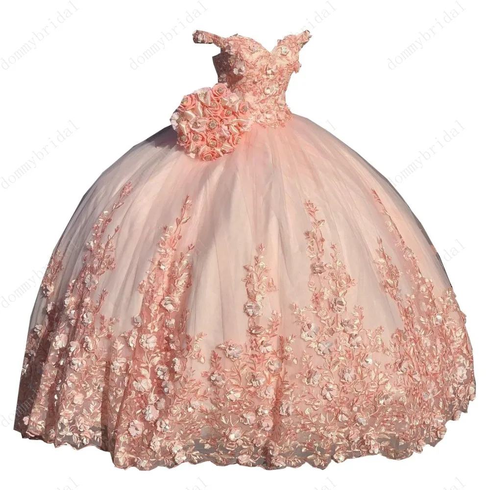 100% новинка, Элегантные 3d цветочные цветы, милое декольте с открытыми плечами, Кепка с короткими рукавами, бальное платье, корсет сзади, длина в пол, дизайн принцессы, vestido De 15 Anos Quinceanera вечерние выпускные торжественные Свадебные платья для гостей для женщин Милые 15 16 Бальные платья размера плюс для маленьких девочек