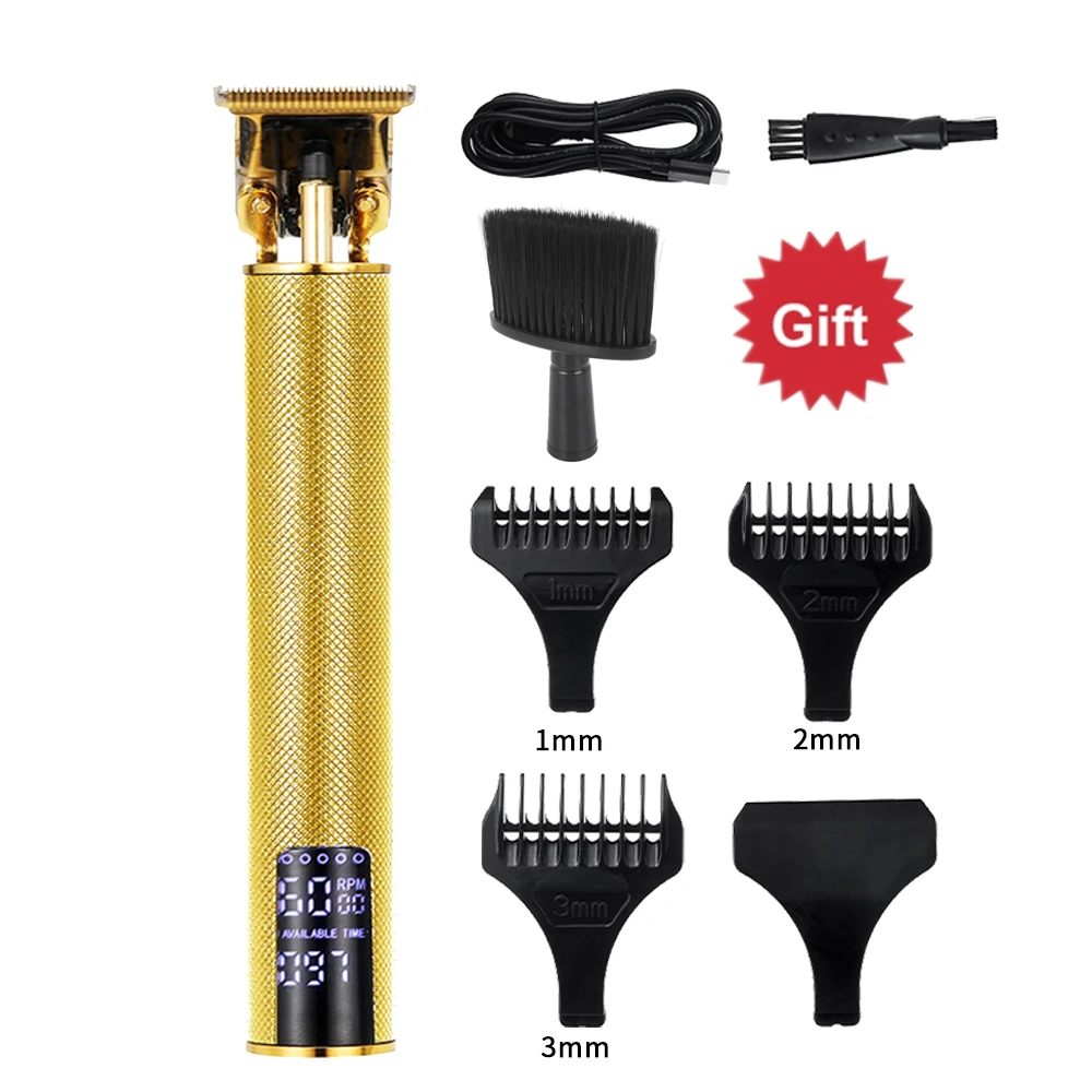 2020 Беспроводная Машинка для стрижки волос светодиодный дисплей перезаряжаемый резак для волос 0 мм t-лезвие борода Парикмахерская Машинка для стрижки волос триммер для мужчин с кисточкой