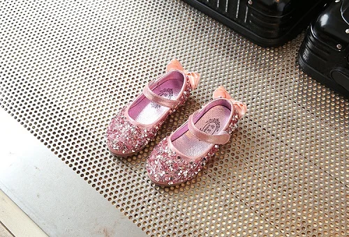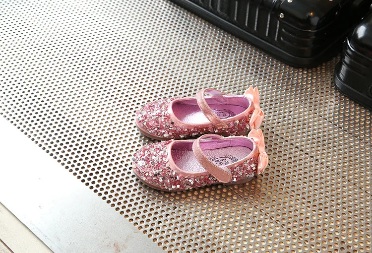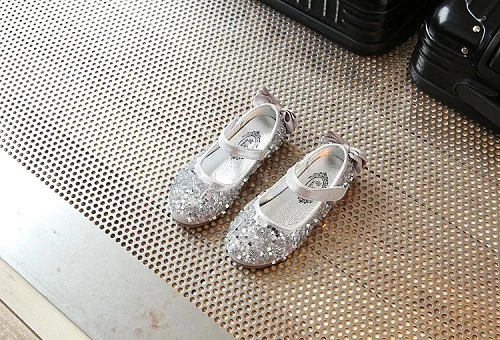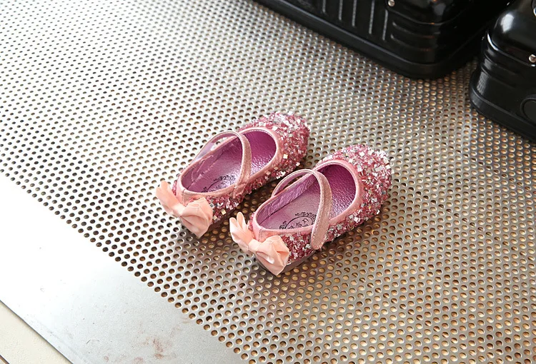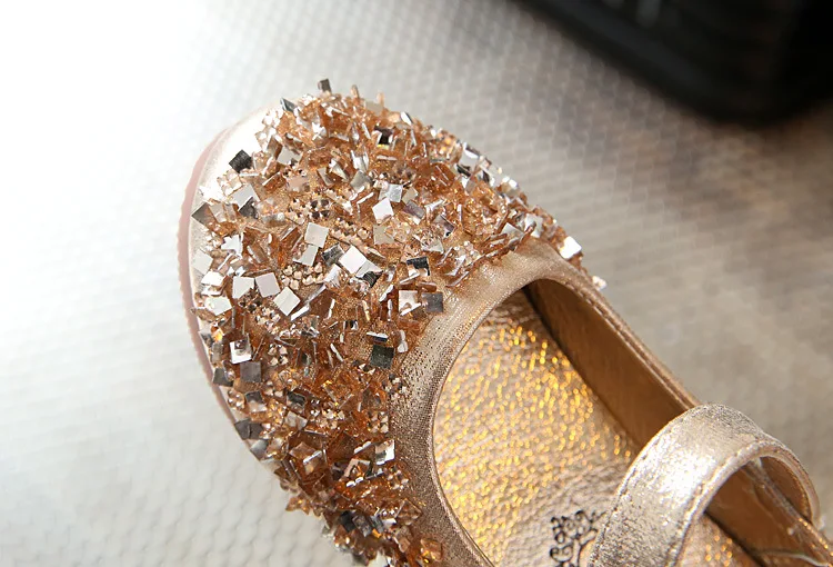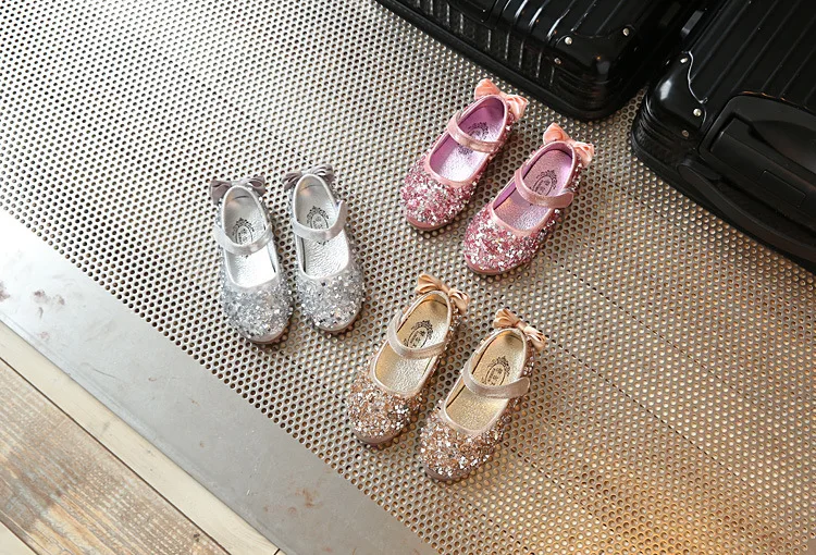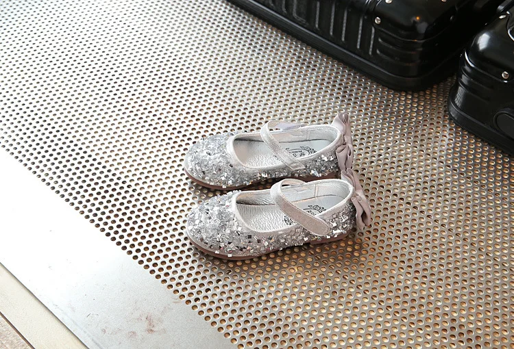 Новинка 2021, Детские блестящие сандалии принцессы, детская мягкая обувь для девочек, Нескользящие вечерние туфли на низком каблуке розовогосеребристогозолотого цвета