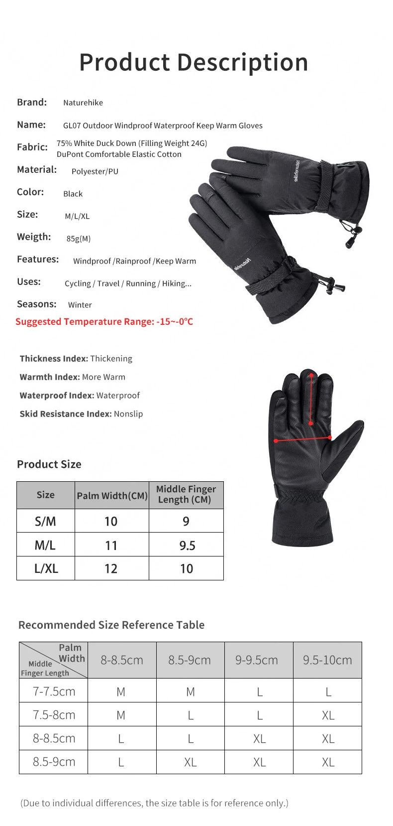Водонепроницаемые перчатки Naturehike на утином пуху, зимние Утепле...