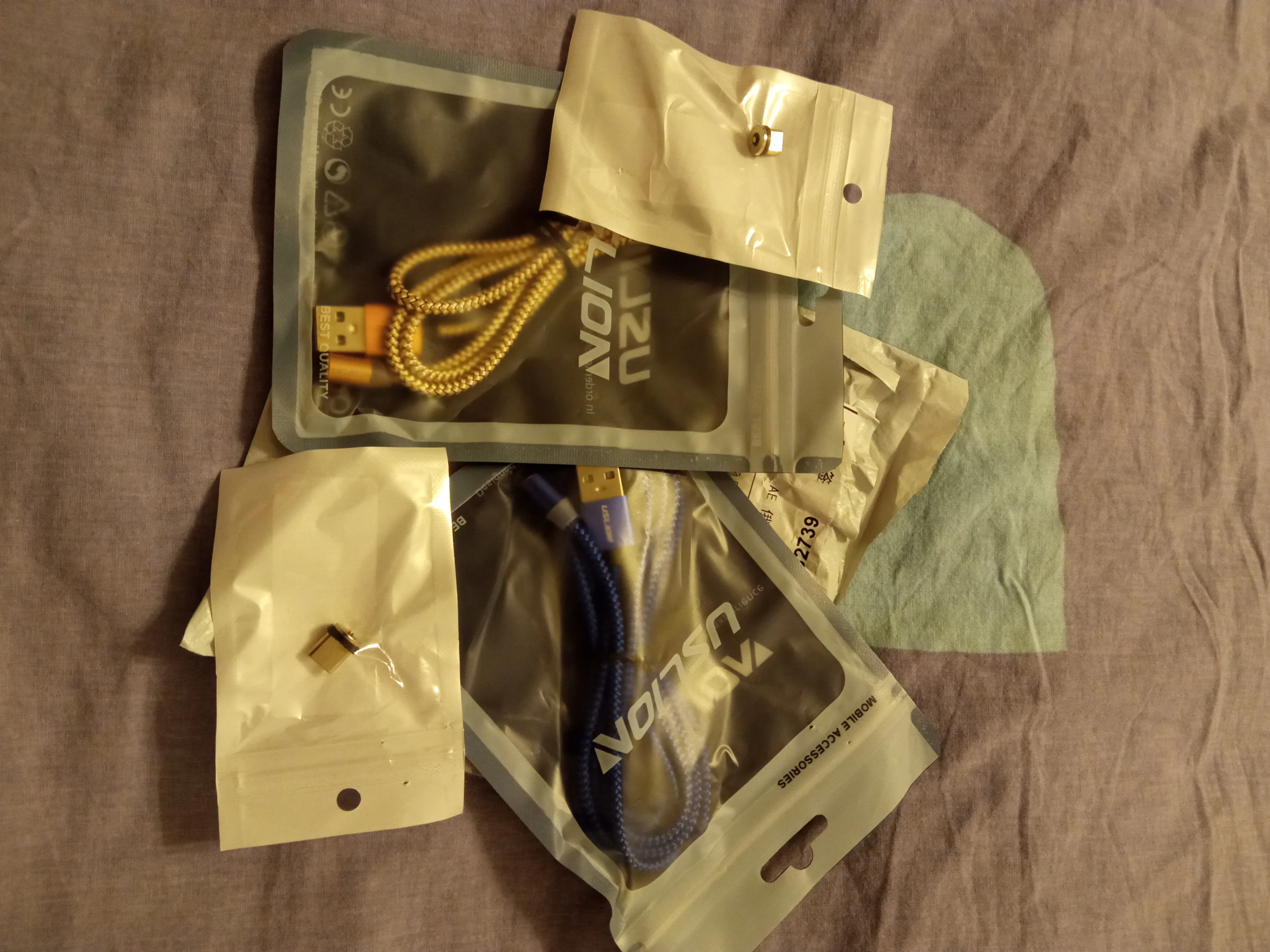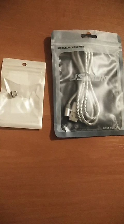 Пришёл пакетик в отслеживаемой сборной посылке за 25 дней в Ижевск. Покупал сразу 3 кабеля. Два из них вообще не рабочии. Один заряд через себя пропускает, но только до 100 мА. Дальше идёт сильное падение напряжения. Заряжать такими проводами телефоны не получится. Они годятся только для питания маломощных устройств. Данные по таким проводам не передаются. Быстрой зарядки тем более нету. Основная причина неисправности проводов, это отсутствие центрального контакта.