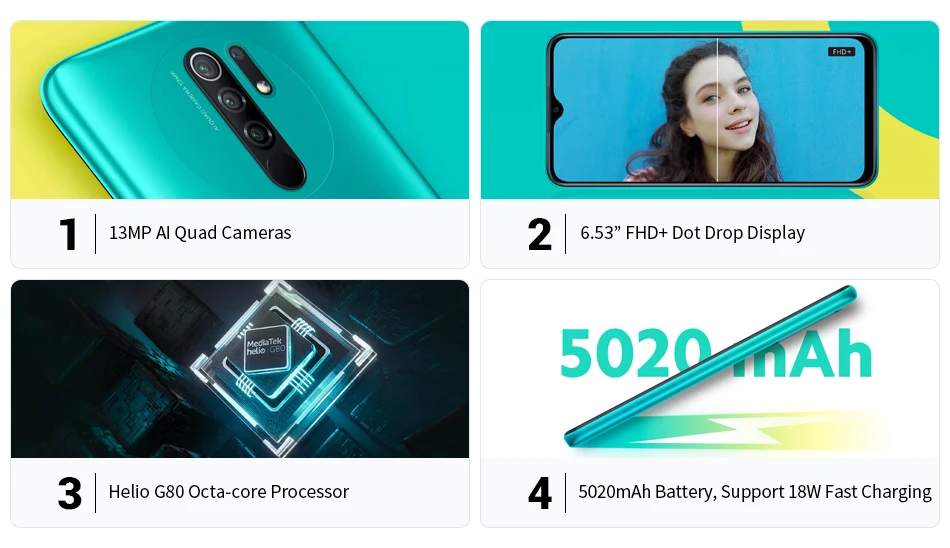 Redmi 9 глобальная версия, 13 МП AI Quad Camera.