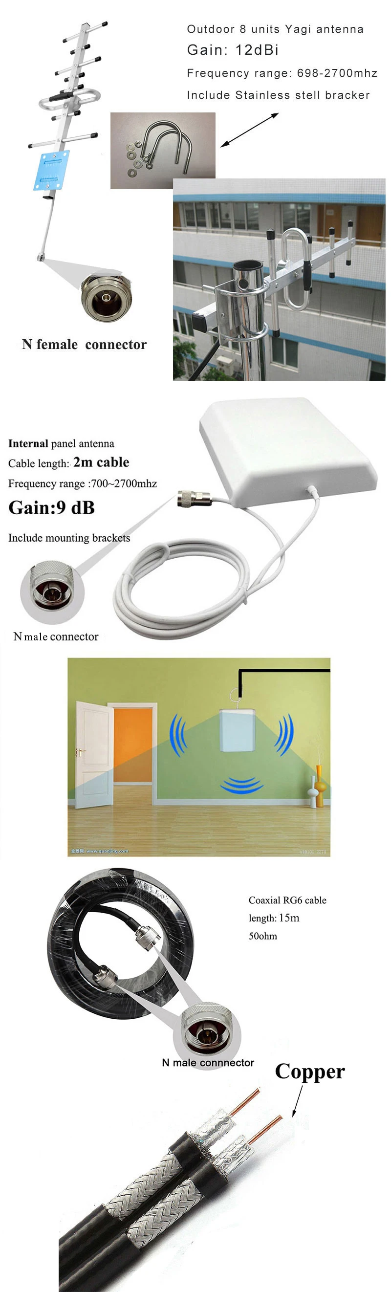 Accessoriespower supply, outdoor antenna , indoor antenna and 15m cable