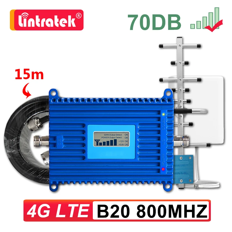Lintratek B20 800 MHZ 4G LTE мобильный Интернет усилитель сигнала полоса 20 800 MHZ сотовый усилитель повторитель 4G Yagi панель антенна 15M