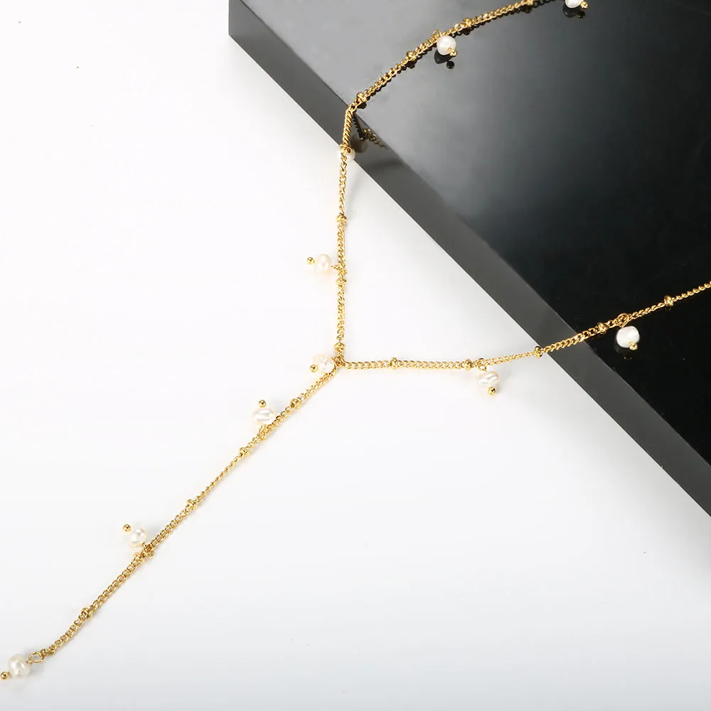 ZMFashion пресноводные бусы для женщин и мужчин, ожерелье, простой чокер до ключиц, Y-образная кисточка, Длинные подвесные цепочки из нержавеющей стали, ювелирные изделия