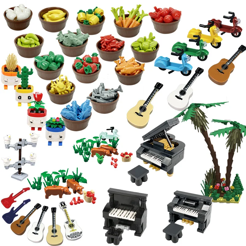 Блокировка серия город музыкальный инструмент пианино растение строительные блоки Развивающие игрушки пластиковая сборка Сращивание города модель игрушка