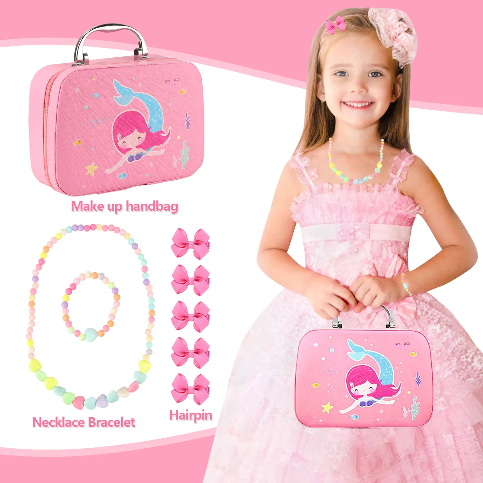 B посылка: 1 х детский макияжЭто (19 шт.) 5 x зажим для волос с бантом 1 x детский браслет 1 ожерелье для детей