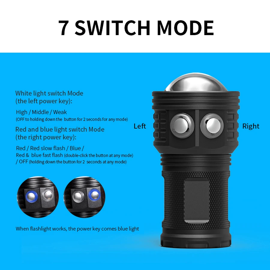 * Модель продукта: QX3 светильник для заливки дайвинга* Характеристики источника: светильник COBБелый светильник: высокий, средний, низкий, длительное нажатие в течение 2 секунд для выключения* Красные и синие шестерни: Красный светильник, красный светильник, синий светильник, двойной щелчок красный светильник, длительное нажатие в течение 2 секунд, чтобы закрыть