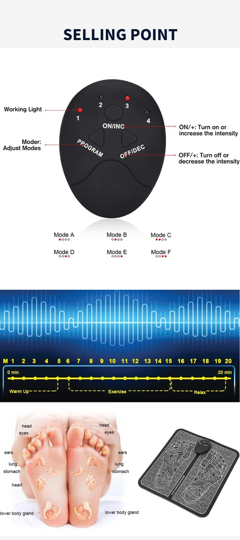 EMS Электрический массажер для ног коврик десятки электродов Электрический терапия массажер циркуляция ног Рефлексология Релакс салуд массаж
