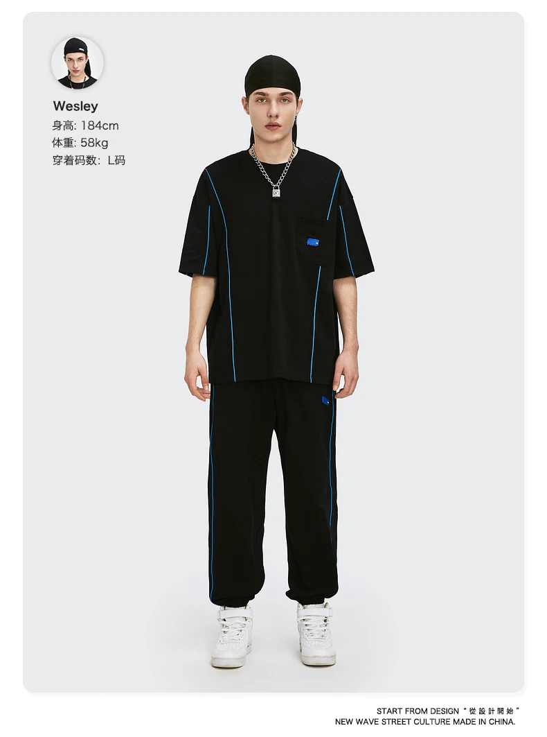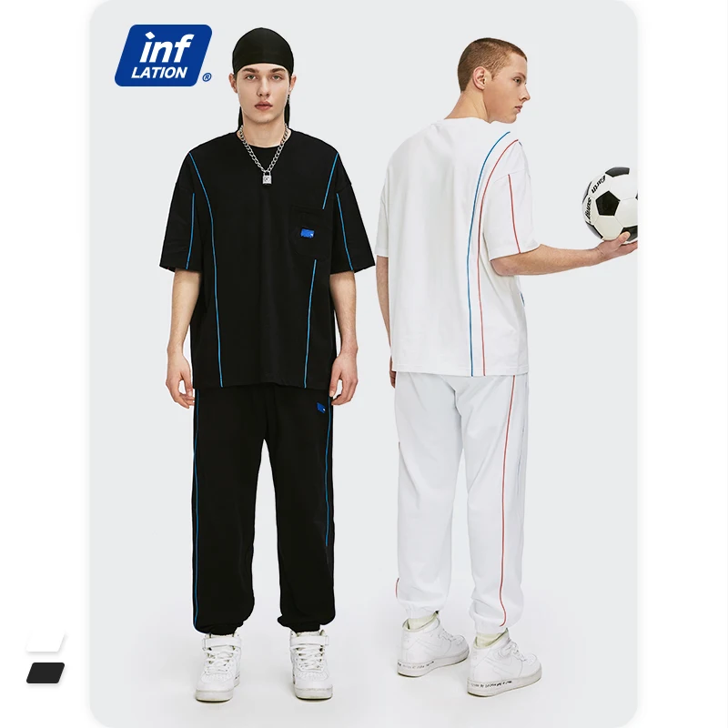 Спортивный костюм мужской со светоотражающими боковыми вставками, набор для бегунов оверсайз, спортивные штаны, комплект из двух предметов