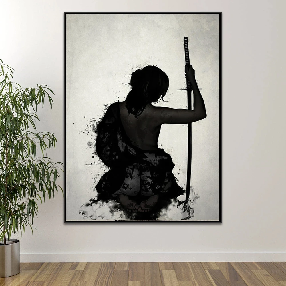 Абстрактная японская самурайская Картина на холсте HD черно-белые п...
