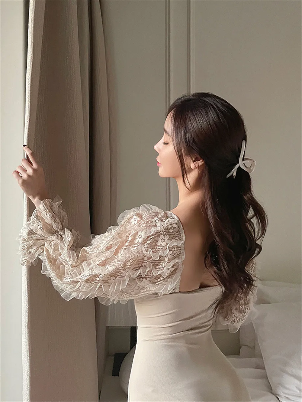 Стиль: сексуальный стиль с длинными рукавами Особенность: бандо