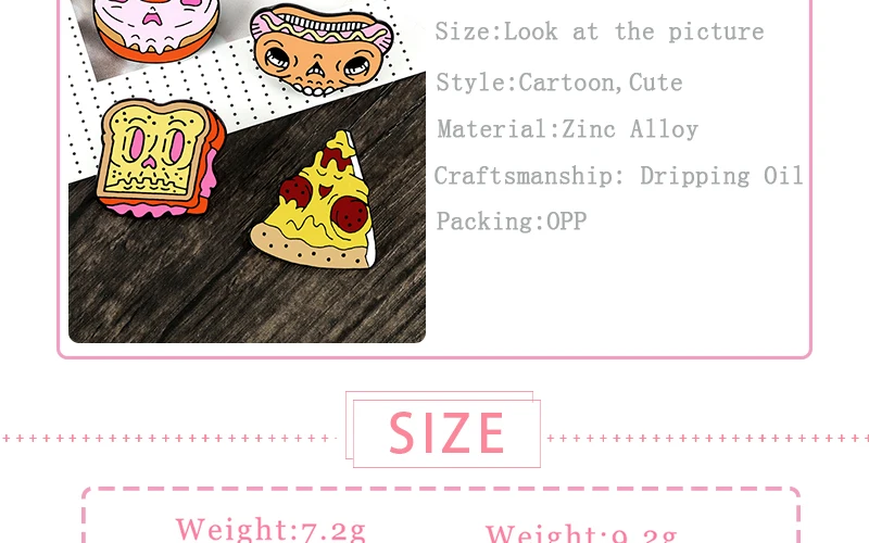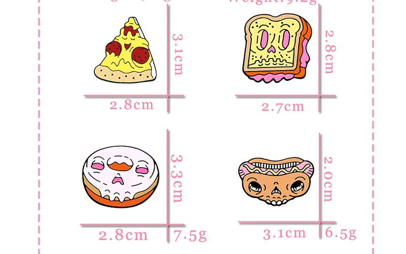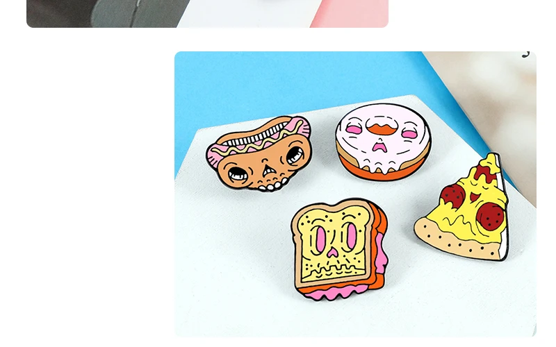 Эмалированные значки в виде черепа, еды, лица зомби, Пончик, пицца,...