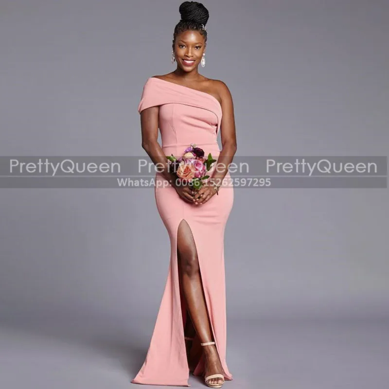 2021 светильник Розовый Русалка пикантные платья подружек невесты высокого Разделение с бретелькой на одно плечо без рукавов в африканском стиле на высоком каблуке для выпускного вечера, платье Свадебная вечеринка