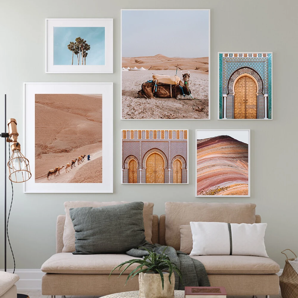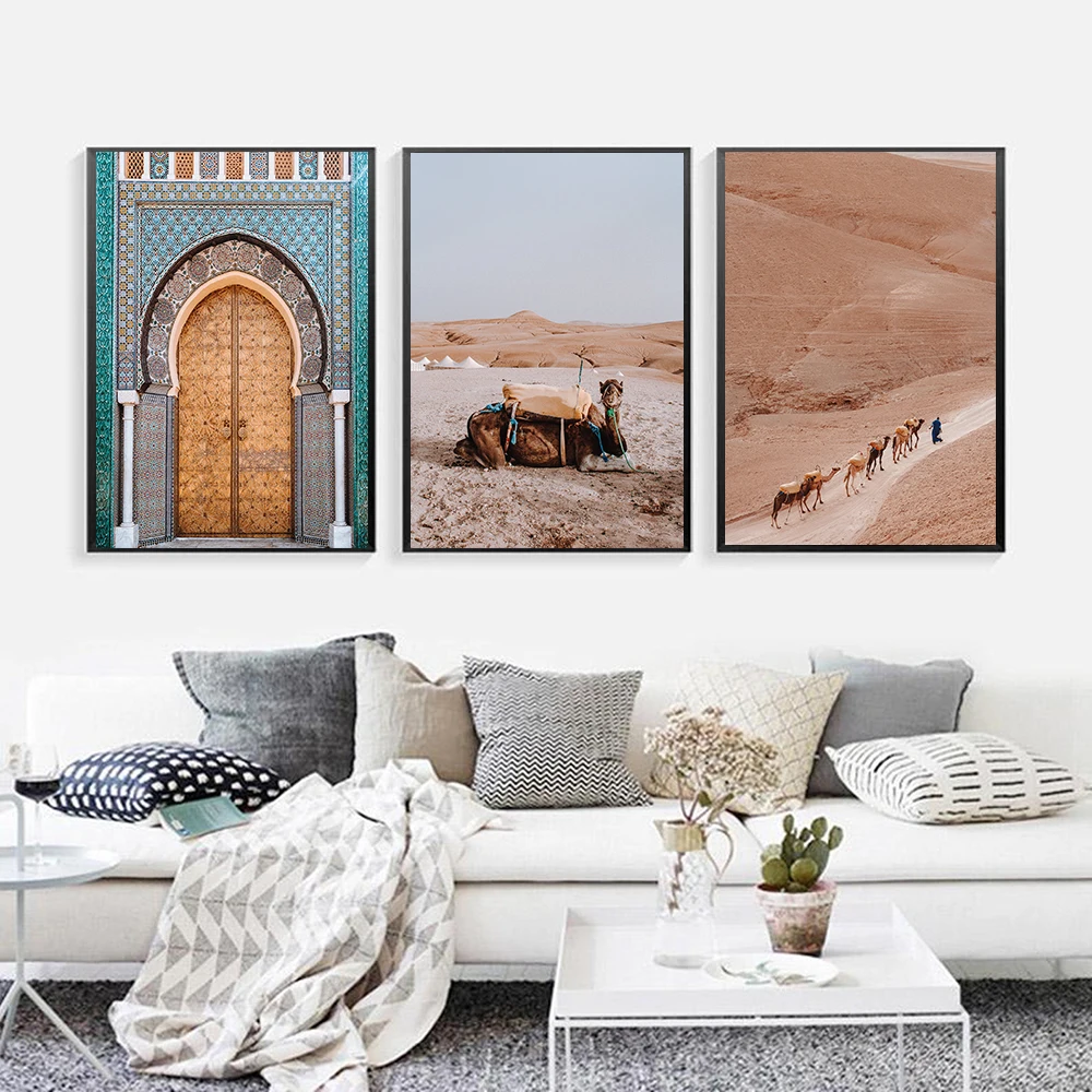 Картина на стену с пейзажем в стиле бохо, путешествия по пустыне, Марракеш, постер с принтом верблюда, декор для гостиной, Марокко, художественный постер картина