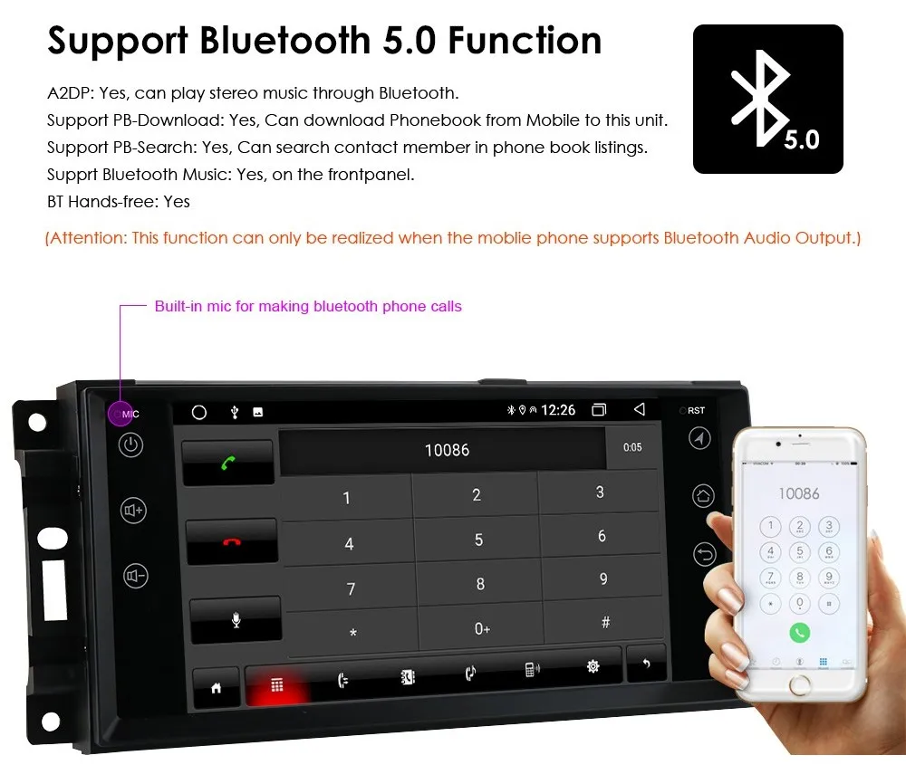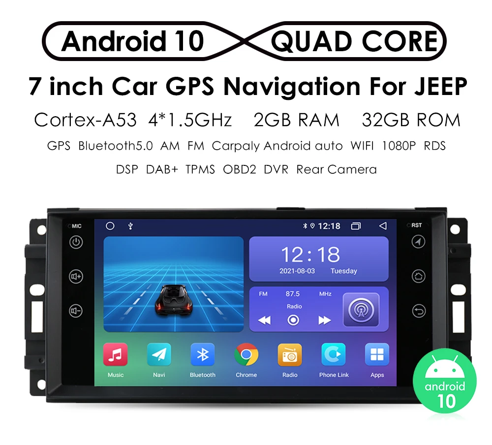 Автомагнитола на Android 10 для Jeep Cherokee 2009, 2008, 2010, Wrangler, Dodge Challenger, радио, Chrysler, 2 ГБ + 64 ГБ, Bluetooth, 1Din