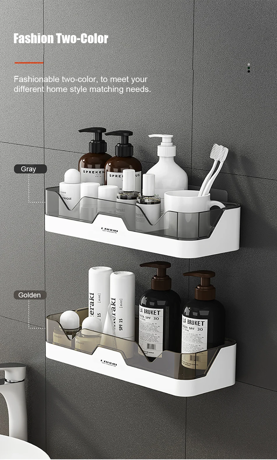 Настенная полка для ванной, для хранения шампуня, пластиковая, шкаф-органайзер для кухни, для аксессуаров для ванной комнаты, без сверла