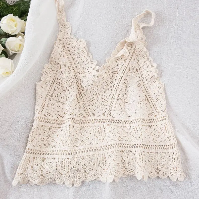 Женская укороченная блузка, однотонная Повседневная Летняя ажурная одежда карамельных цветов, яркий темпераментный мягкий дизайн в Корейском стиле