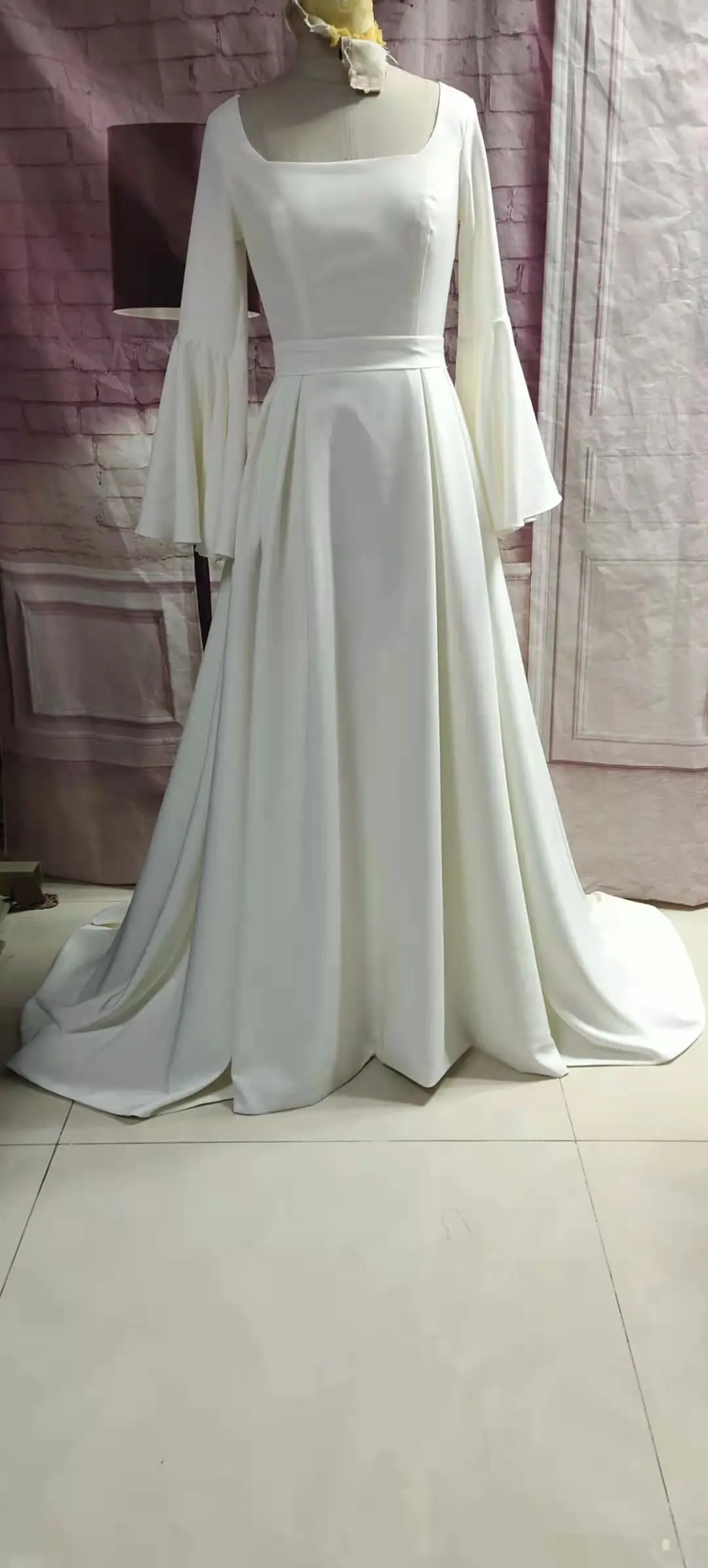 Элегантное свадебное платье с длинным рукавом, квадратным вырезом и...