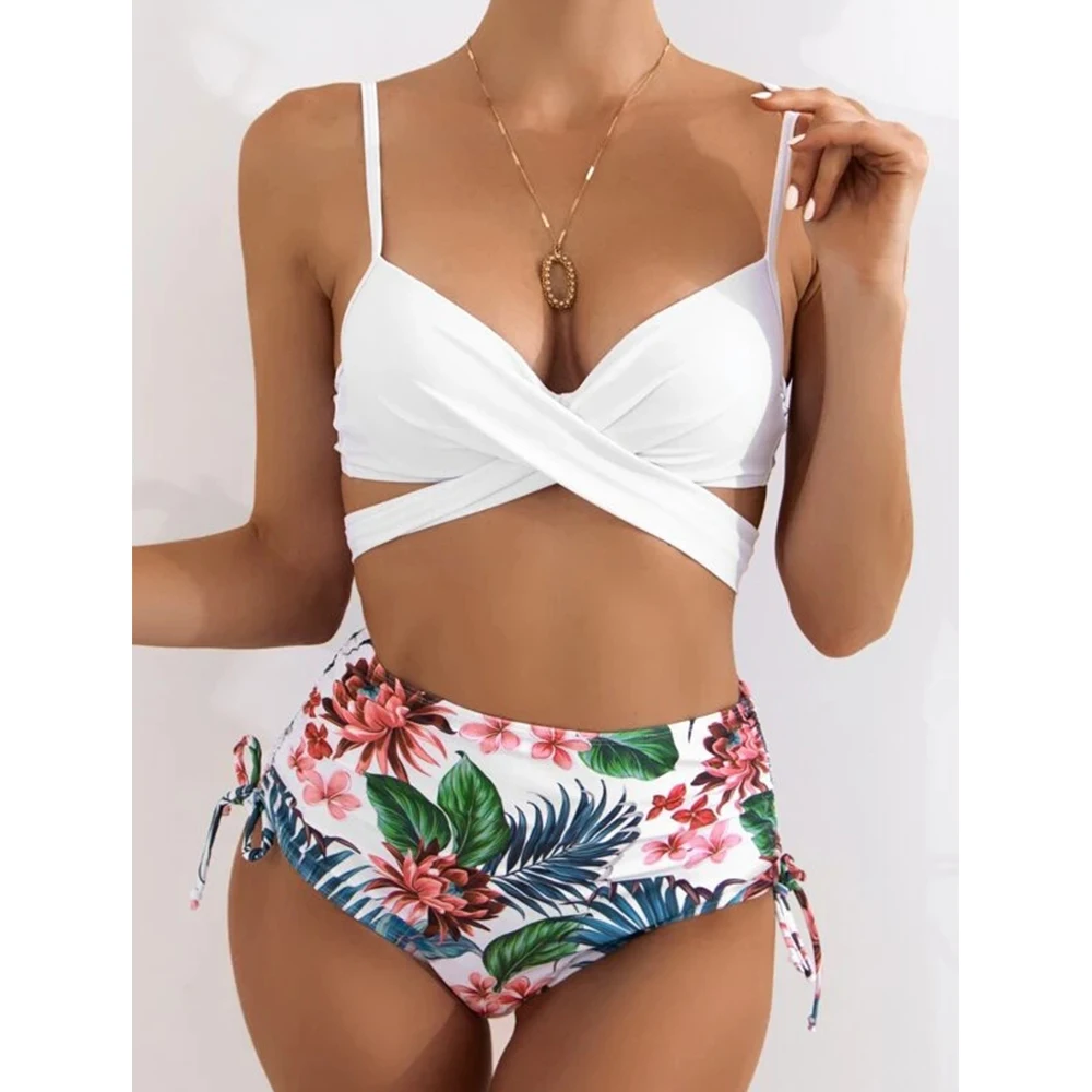 Летний комплект бикини из 3 предметов, женский купальник с цветочны...
