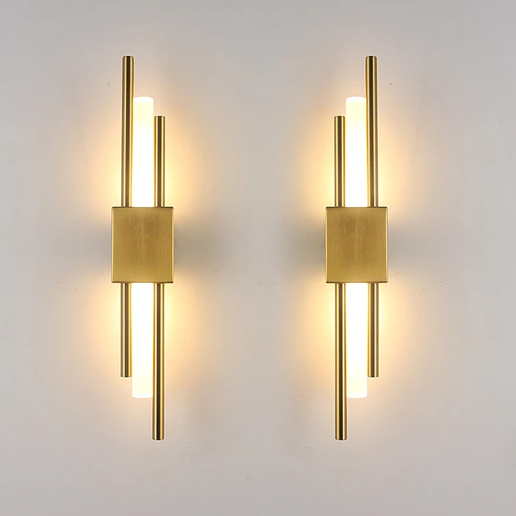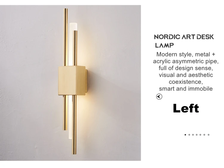Современная стильная светодиодная настенная лампа в скандинавском стиле, 50 см вверх вниз, золотисто-черная акриловая трубка для гостиной, спальни, прикроватный декоративный светильник, бра