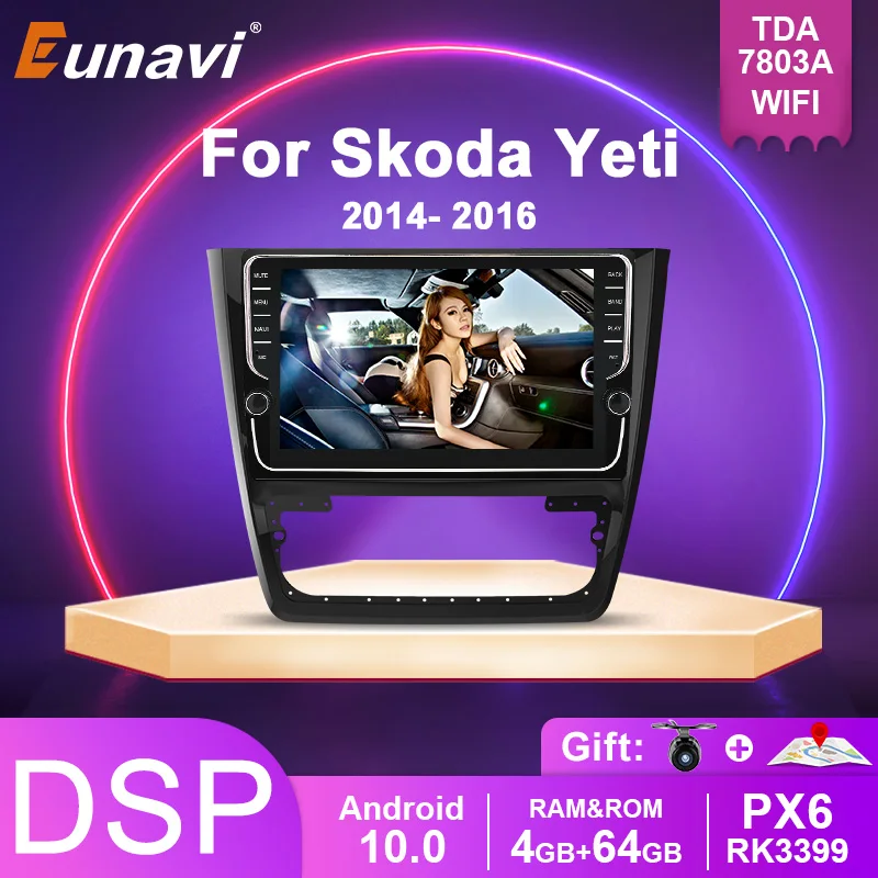 Eunavi 2 Din Автомобильный Радио стерео для Skoda Yeti 2014 2015 2016 GPS навигация мультимедийный плеер TDA7851 8 ядер WIFI Android 10