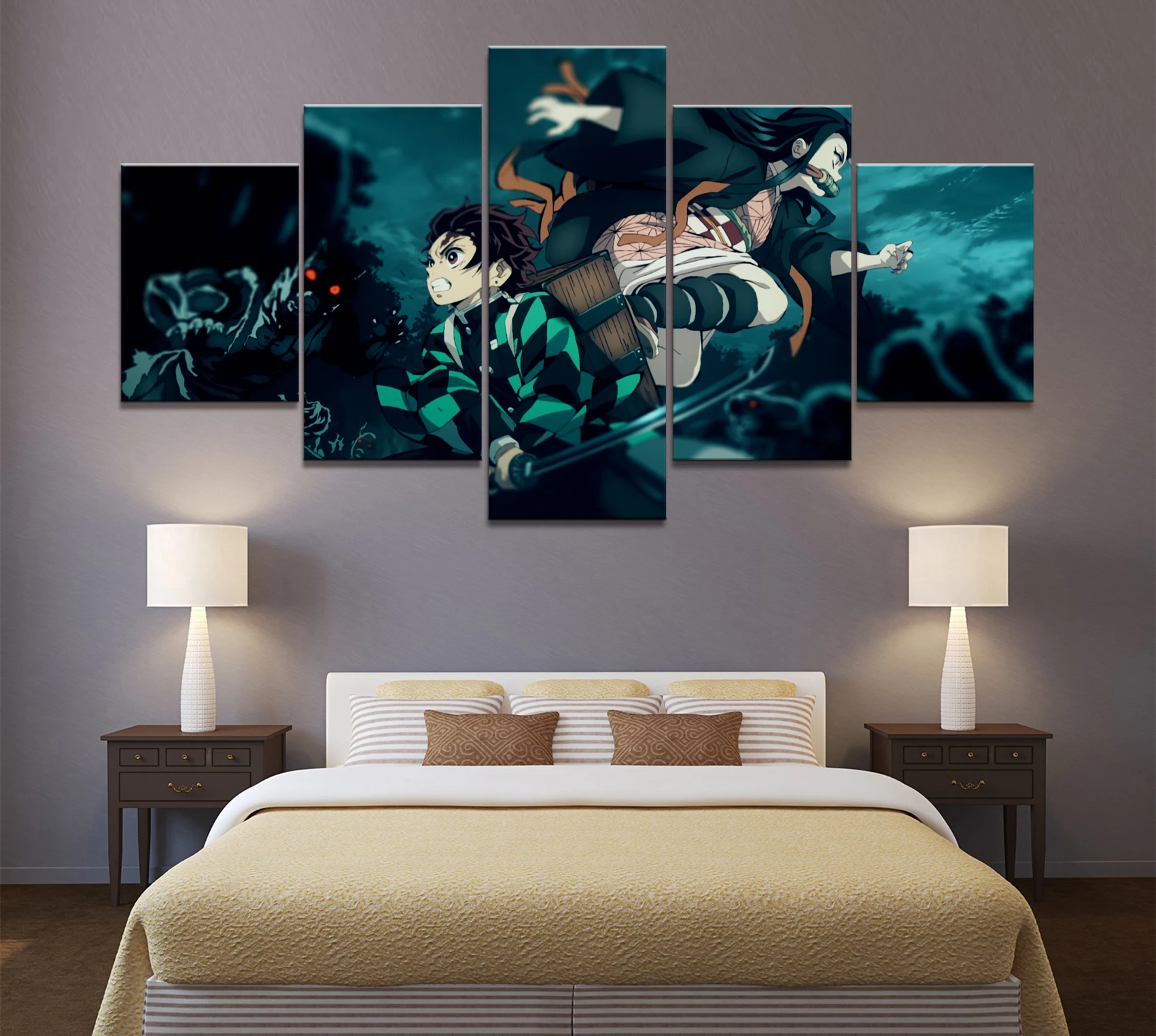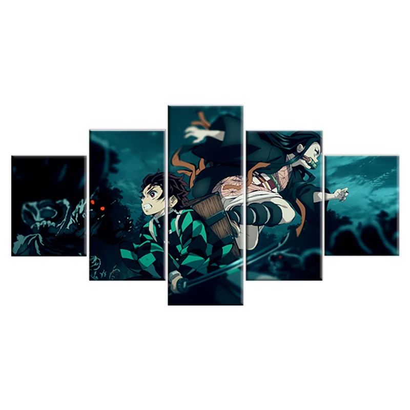 Модульная картина, 5 шт., HD картина с изображением мальчика-меча из аниме клинок, рассекающий демонов, киметсу, нет яибы, Постер, холст, настенное искусство, домашний декор