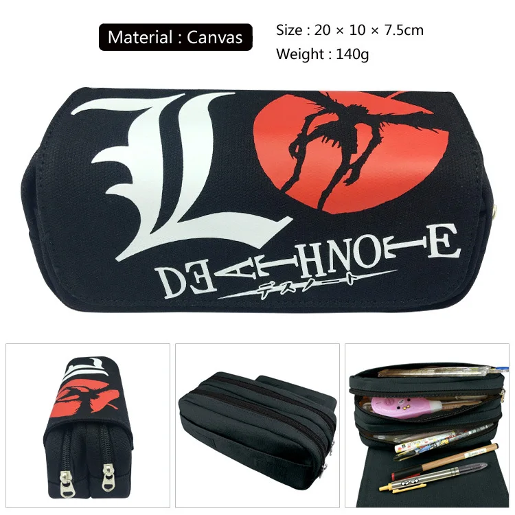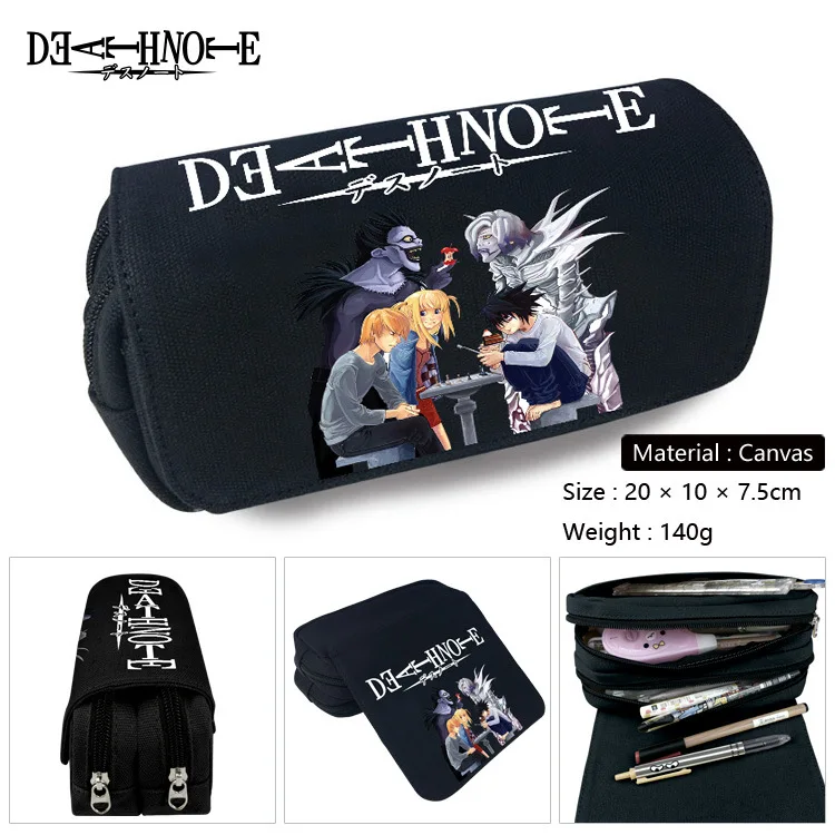 Холщовый чехол для карандашей с изображением аниме Death Note, двухслойный, большой емкости, школьный, офисный пенал для ручек