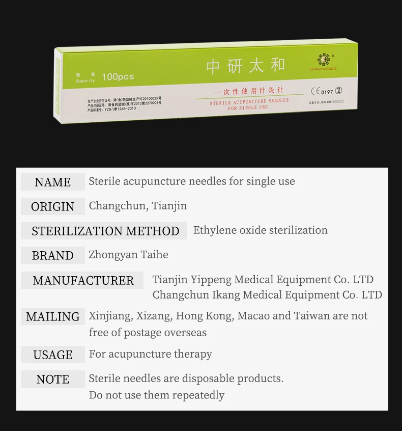 100 шт.кор. Zhongyan Taihe длинные Иглоукалывание иглы одноразовые ...