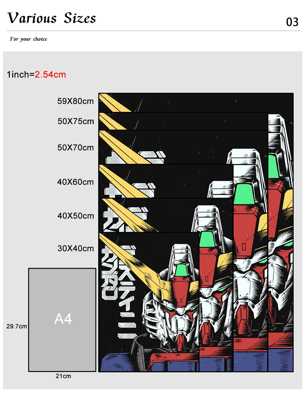 Постер Gundam из аниме, холст, комиксы, винтажная Раскраска по номе...