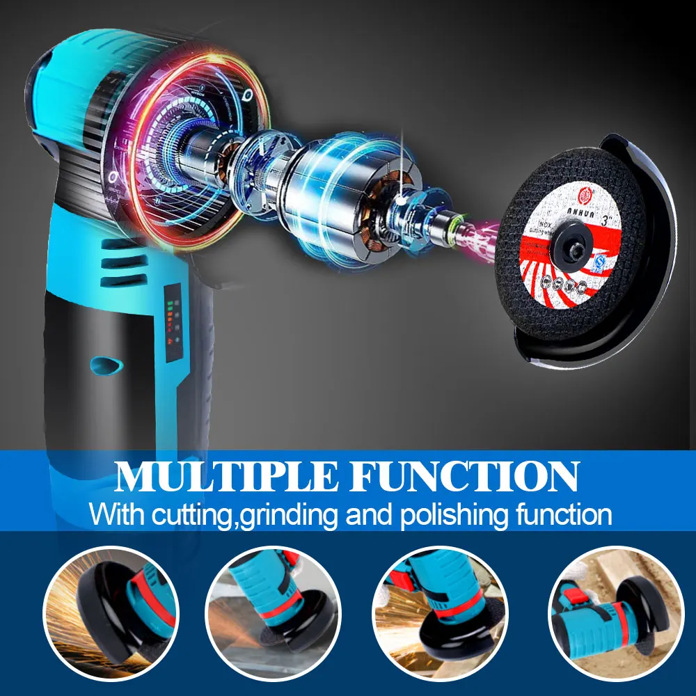 Миниатюрная бесщеточная угловая шлифовальная машина, 12 В, 500 Вт, с перезаряжаемой литиевой батареей, беспроводная полировальная машина, электроинструмент для алмазной резки