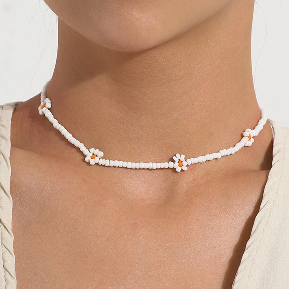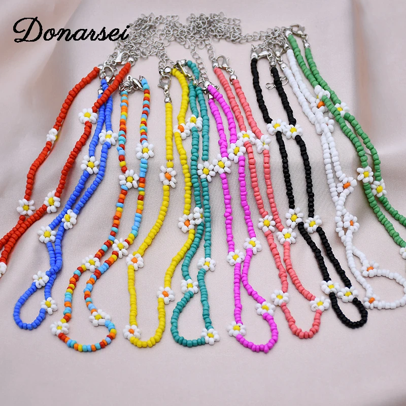 Женское весеннее ожерелье с бусинами, ожерелье ручной работы с цветами маргариток, бусинами, ожерелья-чокеры, ювелирные изделия в стиле бохо