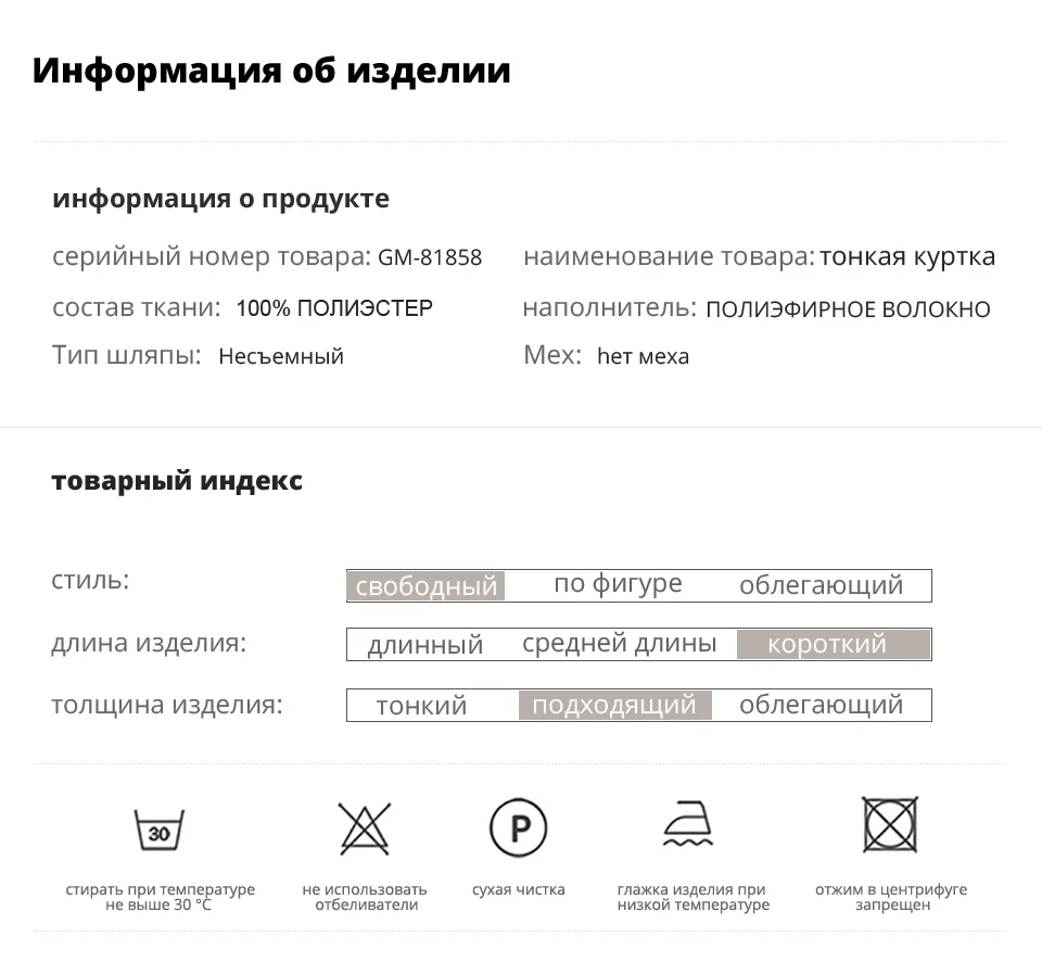 Описание товара было точным,размерная сетка соответствует заявленной на сайте ,цвет конечно не нежно голубой,а ближе к серому,3XL coответствует российскому 52,ткань очень, тонкая плащевка,заказ шел очень долго,продавец общительный,трек не отслеживался,так,как был поменян на другой логистической компанией в китае,по РФ застрял в Казане,но все- таки благополучно добрался до места назначения