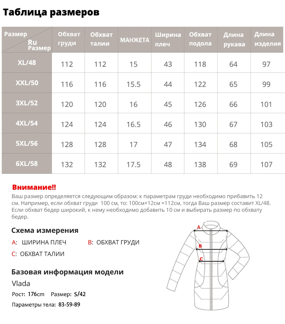 Спасибо большое продавцу!!!!! Спасибо большое за доставку!!!!!! Пальто отличное!!!!! На объем груди 120 размер 6XL свободно.