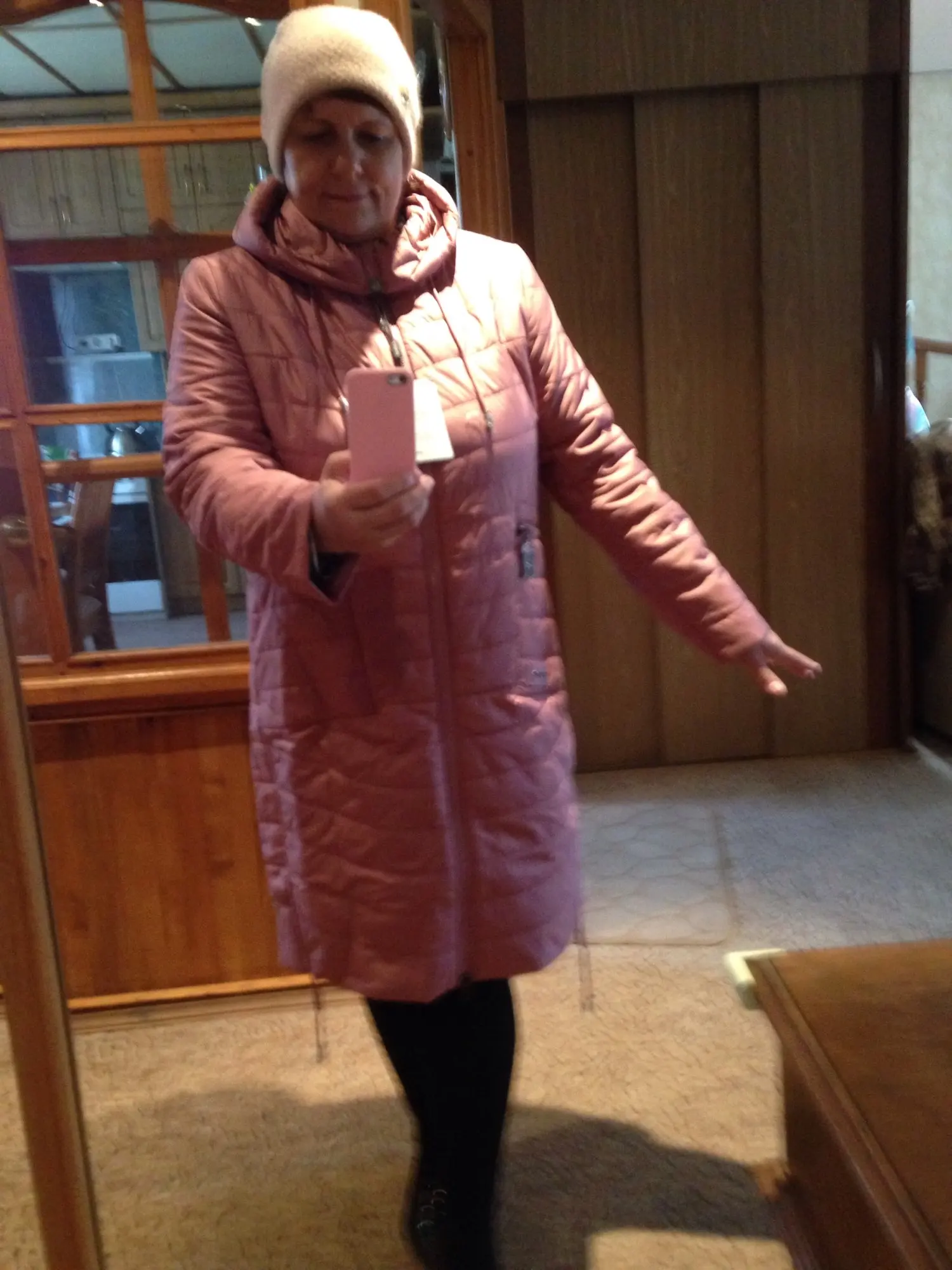 заказ оплатила, ждала неделю пока отправят. появился статус, что отправлено, но посылка стояла на месте. позвонила в службу доставки, там сказали, что посылки у них нет. написала продавцу- как так, статус отправлено, а на самом деле нет. ещё раз написала, что ,если не отправят, то открываю спор. отправили. должна была получить 5 апреля, получила 12, в городе была 10 апреля. по пальто- цвет тусклый, но по качеству очень даже неплохо. на ог 120 , об 115 заказала 5 xl. ну в общем пойдет, но можно было и на размер больше. рост 164 спереди до колена, хотелось бы длинней. но это уже мои хотелки . товар качественный., описанию соответствует.